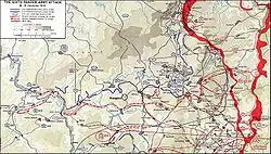 - ↑ En la Historia de la Segunda Guerra Mundial de Cole, la nota al pie de página número 5 de la página 264 dice: La Orden Fragmentaria 27, emitida por el Cuartel General del 328.º de Infantería el 21 de diciembre para el ataque programado al día siguiente dice: "No se tomarán prisioneros a tropas SS o paracaidistas, sino que se les dispará en el acto."[1]