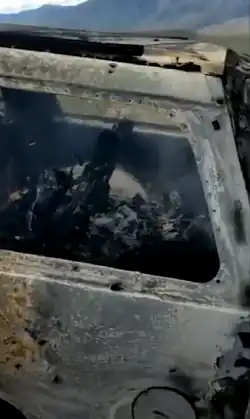 ![]() Auto de los leBaron calcinado. | ||