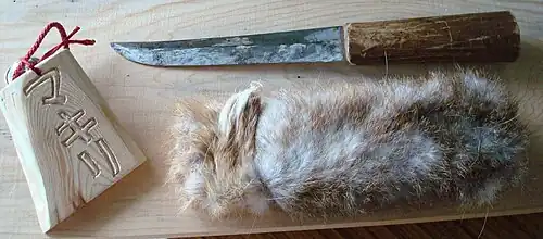 Estrictamente, después de haber apartado la ofrenda y rezado por el espíritu del animal cazado para que tenga descanso, la partida se reparte las partes de la presa a partes iguales, sin importar el hecho de que hayan participado o no en la cacería.[2] La vesícula biliar del oso se considera especialmente valiosa por lo que se suele vender.