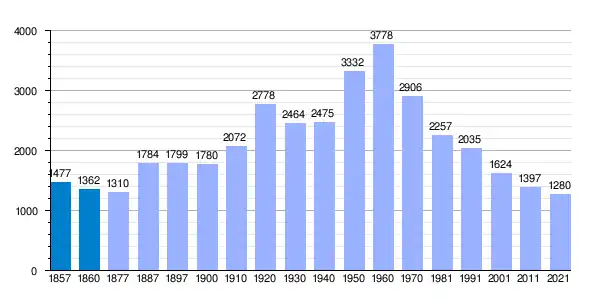 | Gráfica de evolución demográfica de Matallana de Torío[5] entre 1857 y 2021 |