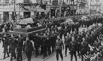 - ↑ Los homenajes fúnebres fueron tan numerosos que los críticos apodaron al nuevo régimen «Estado nacional-funerario. Deletant, p. 60 y Nagy-Talavera, p. 318.