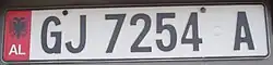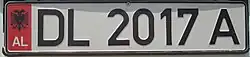 La matrícula está configurada de la siguiente manera. A la izquierda se encuentra, en rojo, la señal que indica que el vehículo pertenece a Albania más la sigla "AL". Luego hay dos letras que corresponden a la región del vehículo. A continuación va una serie de 4 dígitos, y por último una letra que corresponde al año. Las letras O y Q no se utilizan por posibles equivocaciones. La Z se usa para vehículos del gobierno.