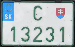 Desde el 1 de junio de 2006, en Eslovaquia existen tres tipos de matrículas automovilísticas válidas. El último tipo contiene el símbolo de la Unión Europea y el escudo de armas nacional (en lugar de un guion).