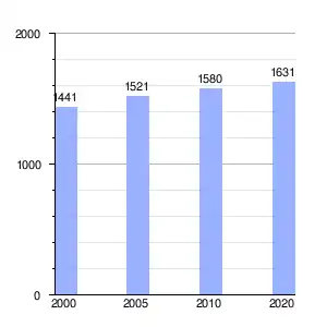 Cuenta con 1631 habitantes lo que representa un incremento promedio de 0.33% anual en el período 2010-2020 sobre la base de los 1580 habitantes registrados en el censo anterior. Ocupa una superficie de 0.3945 km², lo que determina al año 2020 una densidad de 4134 hab/km².[7]