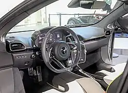 Su interior lleva un panel de instrumentos digital tomado del McLaren Elva. Presenta un sistema de infoentretenimiento de estilo vertical y una pantalla de 8 pulgadas (20,3 cm) girada ligeramente hacia el conductor,[4] la cual se actualiza para mejorar el funcionamiento, pero sigue manteniendo básicamente el control de cada aspecto, desde la navegación, hasta el control del aire acondicionado o la configuración general del coche.[3]