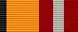 La medalla está conectada con un ojal y un anillo a un bloque pentagonal cubierto con una cinta de muaré de seda de 24 mm de ancho. En el borde derecho de la cinta hay una franja naranja de 10 mm de ancho, bordeada por una franja negra de 2 mm de ancho, a la izquierda hay una franja roja de 12 mm de ancho, dividida en el medio por una franja gris de 4 mm de ancho.[1]
