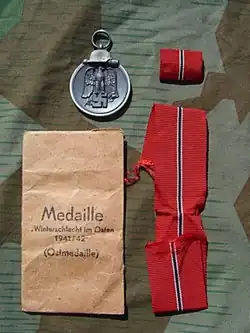 La medalla del frente oriental (en alemán: Medaille Winterschlacht im Osten 1941/42) fue una condecoración otorgada por la Alemania nazi durante la Segunda Guerra Mundial a tanto personal combatientes como no combatientes que sirvieron en el frente alemán durante la Operación Barbarossa durante el período de 15 de noviembre de 1941 al 15 de abril de 1942. Fue instituida el 26 de mayo de 1942 y se conoce más comúnmente como el Ostmedaille (Medalla de Oriente). Fue creada para reconocer la dificultad sufrida por Alemania, a los combatientes o no combatientes, durante el invierno ruso de 1941 y 1942. Fue irónicamente llamado el Frozen Meat Medal o la "Orden de la Carne congelada" (en alemán: Gefrierfleischorden) por el personal del Ejército alemán, la Luftwaffe y la Waffen-SS.[1][2]