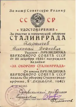 | Medalla por la Defensa de Stalingrado | ||