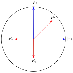 Del mismo modo, la fidelidad de dos estados cuánticos, definida por