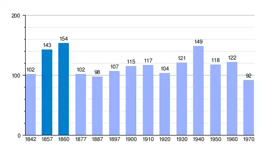 | 1842 | 1857 | 1860 | 1877 | 1887 | 1897 | 1900 | 1910 | 1920 | 1930 | 1940 | 1950 | 1960 | 1970 | |||||||||||||
