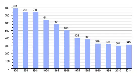 Los datos demográficos contemplados en este gráfico de la comuna de Meigné-le-Vicomte[4] se han cogido de 1800 a 1999 de la página francesa EHESS/Cassini, y los demás datos de la página del INSEE.[5]