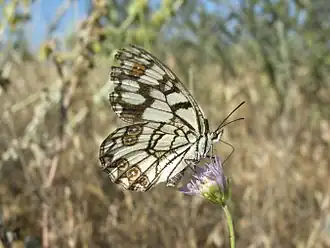 - Melanargia russiae - Tablero de Rusia, presente del sur de Europa al centro de Asia.