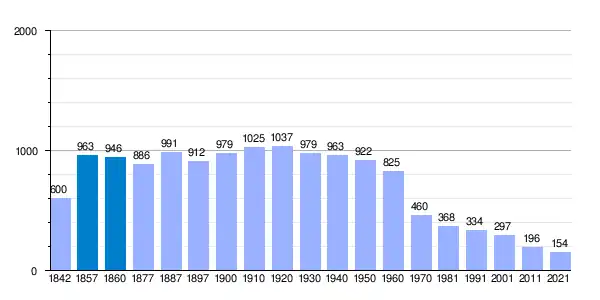 | Gráfica de evolución demográfica de Melgar de Arriba[5] entre 1842 y 2021 |