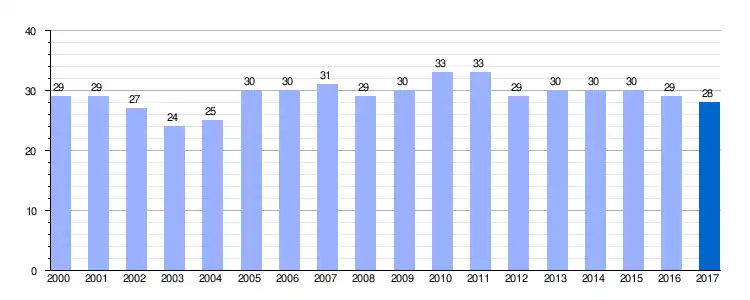 | Gráfica de evolución demográfica de Melgosa entre 2000 y 2017 |