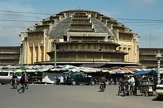 El Mercado central de Nom Pen[1] también llamado el Nuevo Gran Mercado es un gran mercado construido en 1937 en la forma de una cúpula con cuatro brazos que se extienden en vastos pasillos con innumerables puestos de venta de bienes. El diseño inicial es del arquitecto francés Louis Chauchon. Las obras de construcción fueron supervisadas por los arquitectos franceses Jean Desbois y Wladimir Kandaouroff. Se encuentra ubicado en la capital de Camboya, Nom Pen. Cuando se abrió por primera vez en 1937, se dice que era el mercado más grande de Asia, hoy todavía funciona como un mercado. De 2009 a 2011, se sometió a una renovación de 4.200.000 dólares estadounidenses financiados por la Agencia Francesa de Desarrollo.