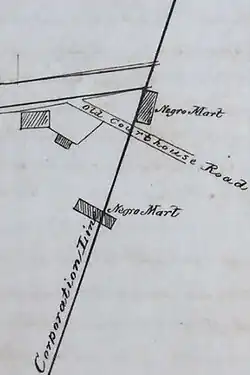 - ↑ a b c n.a. (20 de junio de 2022). «An Account of the Destruction of the Forks of the Road Slave Market». The Archaeological Conservancy (en inglés estadounidense). Consultado el 12 de septiembre de 2023.