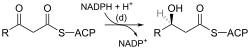 | (d) | 3-cetoacil-ACP reductasa | Reduce la cetona del carbono 3 a un grupo hidroxilo | |