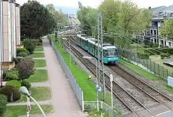 | Praunheim Heerstraße · Friedhof Westhausen · Stepha-Heise-Straße · Hausener Weg · Fischstein ↔ | ↔ Habsburgerallee · Parlamentsplatz · Eissporthalle/Festplatz · Johanna-Tesch-Platz · Schäfflestraße | ||