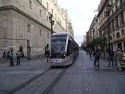 El Metrocentro de Sevilla, conocido popularmente como Tranvía de Sevilla, es un sistema tranviario de transporte público que recorre el centro de la ciudad andaluza de Sevilla (España). Fue inaugurado el 28 de octubre de 2007. Su trazado une la avenida Luis de Morales, en el distrito Nervión, con Plaza Nueva, situada en el casco histórico.[2]​ El sistema consta de una línea única, identificada como T1, propiedad del Ayuntamiento de Sevilla y operada por la empresa municipal de transportes TUSSAM.