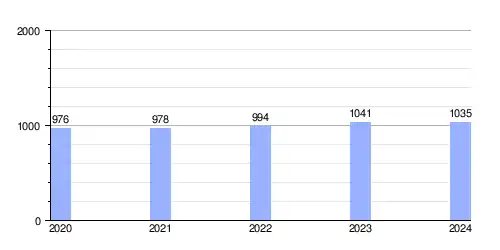 | Gráfica de evolución demográfica de Mezőszemere entre 2020 y 2024 |