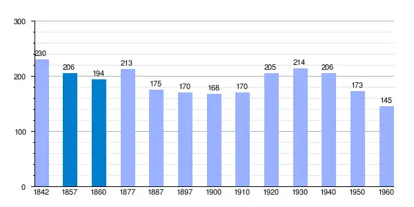 | Gráfica de evolución demográfica de Miñana[5] entre 1842 y 1960 |