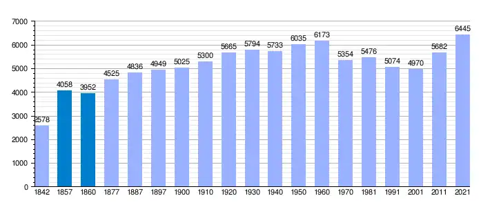 Gráfica de evolución demográfica de Miño[3]​ entre 1842 y 2021