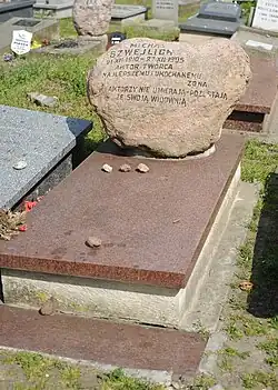 Está enterrado en el cementerio judío de la calle Okopowa en Varsovia (sección 2, fila 14).[1]