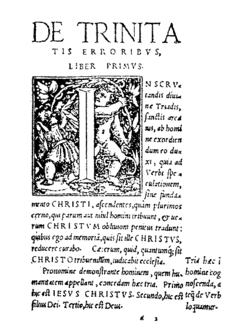 En 1531 publicó De Trinitatis Erroribus (De los errores acerca de la Trinidad), que produjo gran escándalo entre los reformadores alemanes.[11]​ Tampoco caló bien en su patria, ya que Servet tuvo la osadía de enviar una copia al obispo de Zaragoza, quien no tardó en solicitar la intervención de la Inquisición. El año siguiente publicó Dialogorum de Trinitate (Diálogos sobre la Trinidad), acompañado de una obra suplementaria, De Iustitia Regni Christi (Sobre la Justicia del Reino de Dios). Otro opúsculo atribuido a Servet, aunque de datación imprecisa, es Declarationis Iesu Christi Filii Dei (Declaración de Jesucristo Hijo de Dios), también conocido como «Manuscrito de Stuttgart».[c]