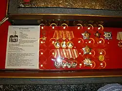 - Orden de la Bandera Roja, cuatro veces (22 de febrero de 1938, 27 de agosto de 1943, 3 de noviembre de 1944 y 24 de junio de 1948);
