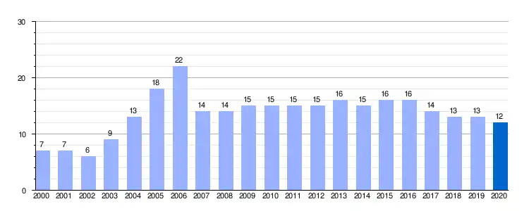 | Gráfica de evolución demográfica de Mijala entre 2000 y 2020 |