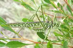 - ↑ Marshall, D. C.; Hill, K. B. R. (2009). «"Versatile Aggressive Mimicry of Cicadas by an Australian Predatory Katydid"». PLOS ONE. PMID 19142230. doi:10.1371/journal.pone.0004185.