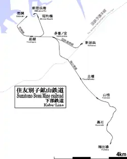 - 1936: en septiembre el ferrocarril minero se extiende hasta el Puerto de Niihama (新居浜港 Niihama-kō?).