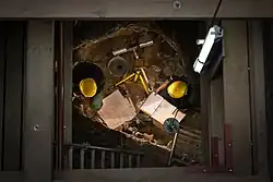 Las estructuras de extracción son variadas y vienen condicionadas en su mayor parte por la geología. Se conocen explotaciones a cielo abierto en la ladera del valle en la que el sílex aflora directamente .[25] Así, se han encontrado simples fosas de pocos metros de profundidad en los bordes de la meseta, donde la capa de loess es poco espesa y no se requiere una extracción subterránea .[26] No obstante, el yacimiento es conocido fundamentalmente por la explotación subterránea y por la apertura de minas que alcanzan entre 3,5 m y 16 m de profundidad bajo la superficie. Para la apertura de las minas, los trabajadores habrían excavado pozos que les permitieran acceder a los bancos de sílex. En Spiennes, estos pozos de acceso son estrechos, con una medida que por lo general no sobrepasa el metro de diámetro. La profundidad, por otra parte, varía según la localización del sílex en el subsuelo. En algunos casos, como sucede en las minas de 15-16 m de profundidad de Camp-à-Cayaux, los mineros han elegido explotar un banco de sílex específico por su calidad particular, en detrimento de otros bancos que han dejado de lado.[27] Una vez alcanzado el nivel del sílex, la extracción se desarrolla mediante la creación de una serie de galerías de longitud variable. En Petit-Spiennes, por ejemplo, la explotación subterránea se lleva a cabo a partir de galerías que alcanzan los 5 m de longitud desde el centro del pozo previamente excavado. En Camp-à-Cayaux algunas galerías son más largas, pudiendo llegar hasta los 7 m desde el centro del pozo. Las superficies explotadas están en el orden de entre los 20 y los 45 m².
