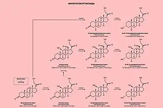 El principal y más potente es la aldosterona, que aumenta notablemente la concentración de sodio, cloruros y bicarbonatos en los líquidos extracelulares, aumento considerable de los electrolitos totales en los líquidos extracelulares, lo que provoca un aumento de la reabsorción de agua por los túbulos renales causando sed y provocando polidipsia. El resultado final es un aumento de volumen del líquido extracelular, pero raramente el alza es tan importante como para provocar edema extracelular generalizado.[1]