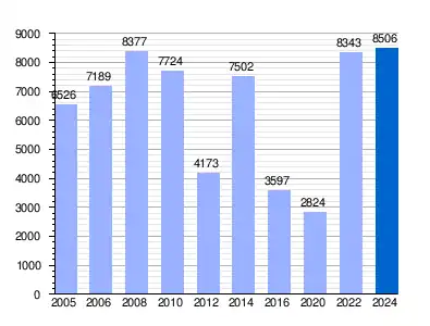 - ↑ La falta de datos en 2018 se debe a que el departamento estuvo suprimido entre finales de 2016 y mediados de 2018.
