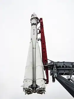 Pero mucho más ambicioso y significativo fue el lanzamiento el 12 de abril de 1961, el año "de la nave espacial Vostok-1 " piloto que fue Yuri Gagarin, que se convirtió en el primer hombre en el espacio.[13][44][45]