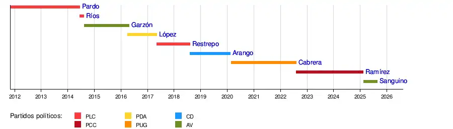 Antonio Eresmid Sanguino | 18 de febrero de 2025 | En el cargo | Alianza Verde | [23] | |