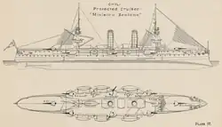 En noviembre de 1894, el gobierno brasileño encargó tres cruceros protegidos al astillero británico Armstrong, Mitchell & Company. El primero de estos barcos fue puesto en grada el 6 de mayo de 1895 en el astillero de Armstrong en Elswick, pero las dificultades financieras hicieron que la primera entrega del barco se retrasara, y en su lugar fue vendido al gobierno chileno en septiembre de 1895.[1][2] En un principio, el barco se llamaría Chacabucu, pero fue botado con el nombre de Ministro Zenteno el 1 de febrero de 1896.[1] El trabajo continuó para Brasil en los dos barcos restantes, con otro crucero ordenado con el mismo diseño para reemplazar al Ministro Zenteno, pero solo uno, el Almirante Barroso, fue operado por Brasil, con los otros dos barcos, Amazonas (más tarde USS New Orleans) y Almirante Abreu (más tarde USS Albany), comprados por la Armada de los Estados Unidos en vísperas de la Guerra Hispano-Estadounidense de 1898.[3]