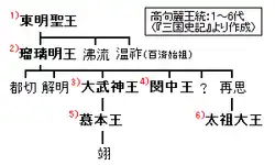 Sin embargo, según el Samguk Yusa , Minjung era hijo de Daemusin y el hermano menor de Mobon (Hae U).