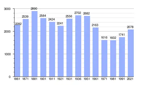 | Gráfica de evolución demográfica de Mirabello Sannitico entre 1861 y 2021 |