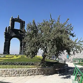 El parque mirador cuenta con un arco de piedra tallada por Agustín Callizaya a inicios de la década de 1920, el arco perteneció a una vivienda ubicada en las cercanías de la Plaza Isabel la Católica, en la zona de Sopocachi, y fue trasladada al parque tras la demolición de la misma.[2]