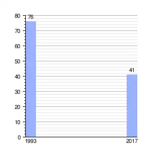| Gráfica de evolución demográfica de Miraflores entre 1993 y 2017 |