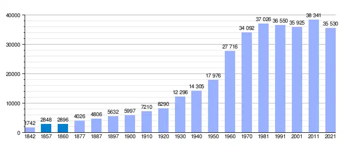 Gráfica de evolución demográfica de Miranda de Ebro[42] entre 1842 y 2021