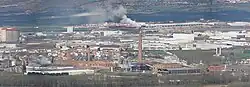 Vista panorámica de la zona industrial de Bayas. En la izquierda se observa la fábrica azucarera, en primer término las plantas de Montefibre y FEFASA; y en el centro-derecha de la imagen el polígono industrial de Bayas