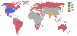 | Retirados | Dinamarca, Ghana, Gran Bretaña, Indonesia, Islas Caimán, Islas Cook, Noruega, Países Bajos, Sri Lanka | |