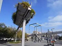 - Contenedores: sirven para recoger la basura; hay también de recogida selectiva de residuos (papel, plástico, vidrio, pilas, ropa) y de recogida neumática. Pueden ser contenedores de superficie (de 3200 o 1100 litros) o soterrados.[45]