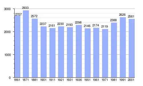 | Gráfica de evolución demográfica de Mocònesi entre 1861 y 2001 |