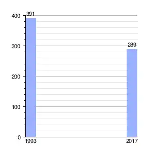 | Gráfica de evolución demográfica de Mocara entre 1993 y 2017 |