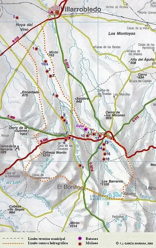 | 9 | Molino Garbancero | 539070 | 4316760 | 920 | El Bonillo | Ayo.Ánimas | DCHA. | |