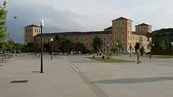 9ª Fase. Restauración y adecuación del llamado claustro de «Praves», de sus cuartos y del apéndice. Reconstrucción de la Torre del Consistorio. Ordenación del área sur; construcción del garaje y cuarto de máquinas. Ajardinamiento de la zona.